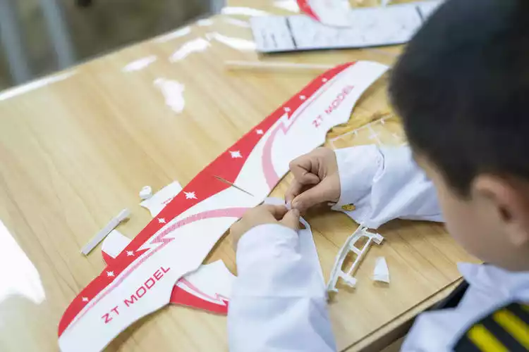 First, we explain the components of the aircraft, then we break it down and guide the children step by step to complete the construction of the aircraft. This kind of activity should be the favorite of children. Assembling a flying "toy" by themselves is a lot of fun.