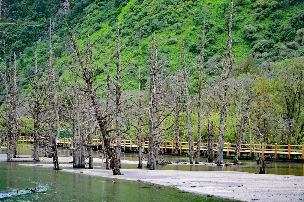 You can hand over the big bag to the groom and travel light. First, you will pass a 5km scenic wooden plank road to reach the Dead Wood Beach. After passing the Dead Wood Beach, you will enter the mountain forest and alpine meadow crossing route where there is no mobile phone signal.