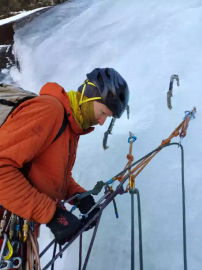 I know that some people with a good rock climbing background can reach WI4 ice walls after two seasons of climbing. Can you climb 5.11 after two months of rock climbing? The essence of ice climbing lies more in the mentality and accumulation of experience. Climb more and more different ice walls.