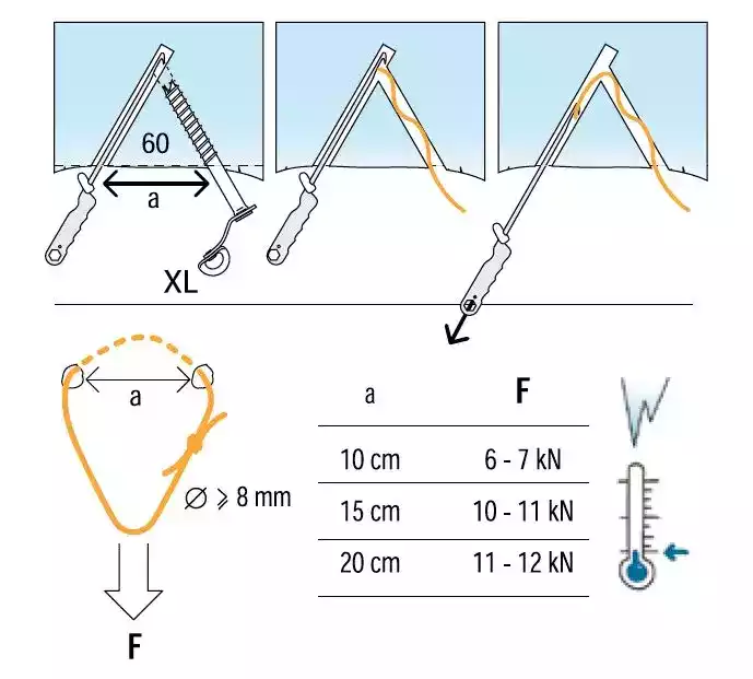 In principle, the longer the ice screws used in a site, the stronger the site. However, in practice, we need to flexibly select the ice screws based on the quality of the ice wall. The principle of site construction is independent backup and balance.