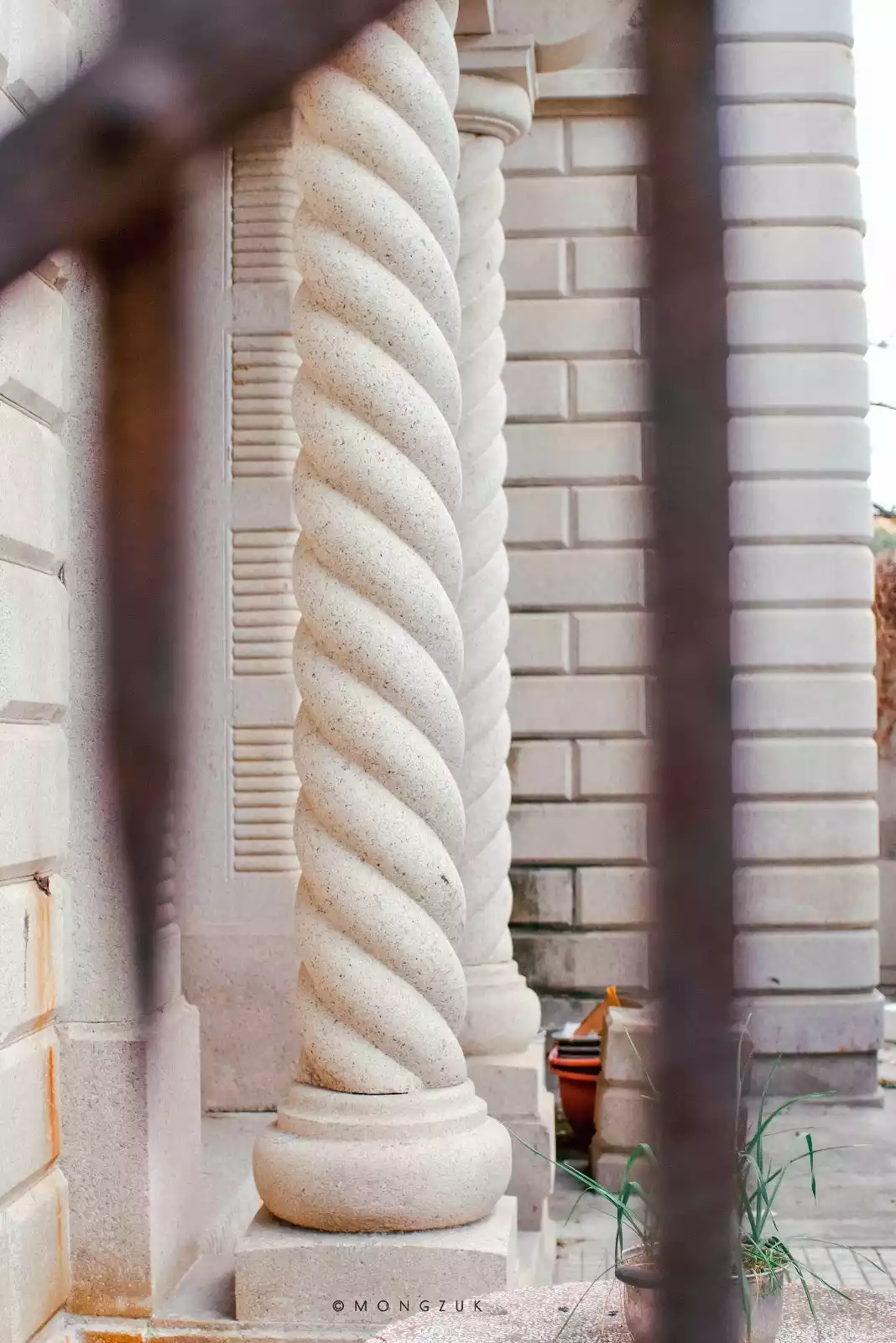 The appearance is also unique, with distinctive spiral Roman columns and corner columns ingeniously stacked with whole pieces of granite, making the entire corner rounded and smooth.