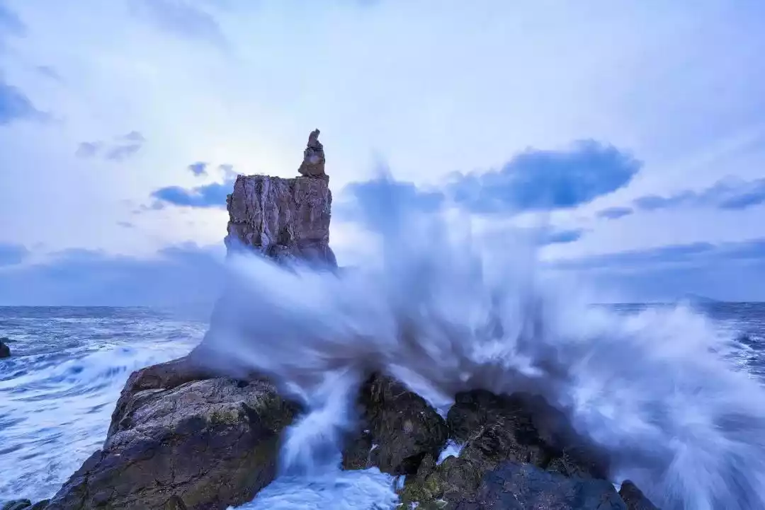 Binhai National Geopark is a popular photography destination. Here, you can admire rock deposits dating back hundreds of millions of years, and numerous ancient fossils that have formed into bizarre boulders, resembling stone monkeys observing the sea or rocs spreading their wings.