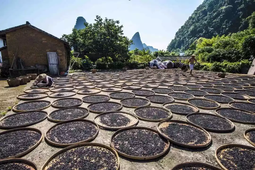 The winnowing basket is filled with fermented black beans. The younger people are busy sifting the fermented black beans, while the old people are making tea and taking a nap on the side. The simple life makes people lose themselves in time in an instant, leisurely and comfortable.