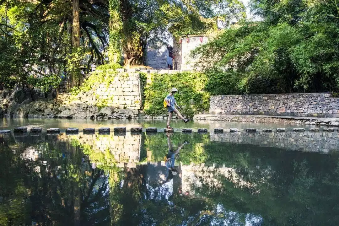 The Stone Tiao Bridge is made up of 31 stone piers. Every step you take brings you to the thrill of excitement. Every jump brings you back to the joyful days of hopscotch in your childhood.