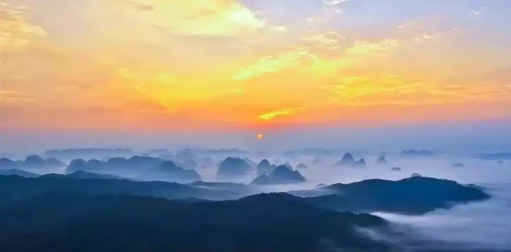 There is a little-known excellent viewing platform around Huangyao - Dongtanling, located at the commanding heights of Huangyao Ancient Town. It is the best place to overlook the beautiful scenery of the mountains and the entire Huangyao karst landform.