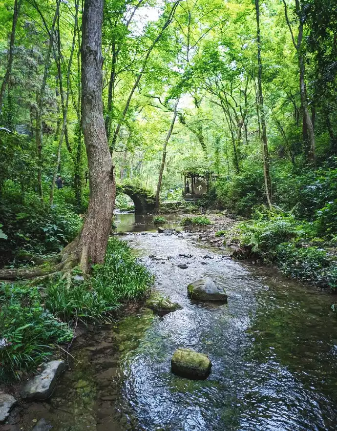 The lack of publicity doesn't mean the scenery isn't stunning. Here, the water is like jasper, the mountains are dark blue, and the endless bamboo sea feels like a place you've stumbled upon. Lush green bamboo leaves sway in the breeze, and insects crawling on the grass are each preoccupied with their own little world.