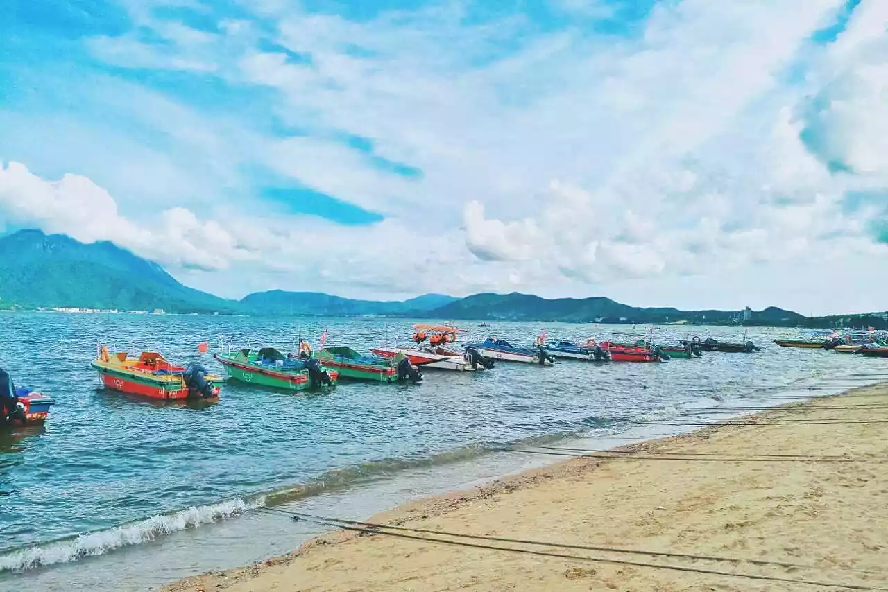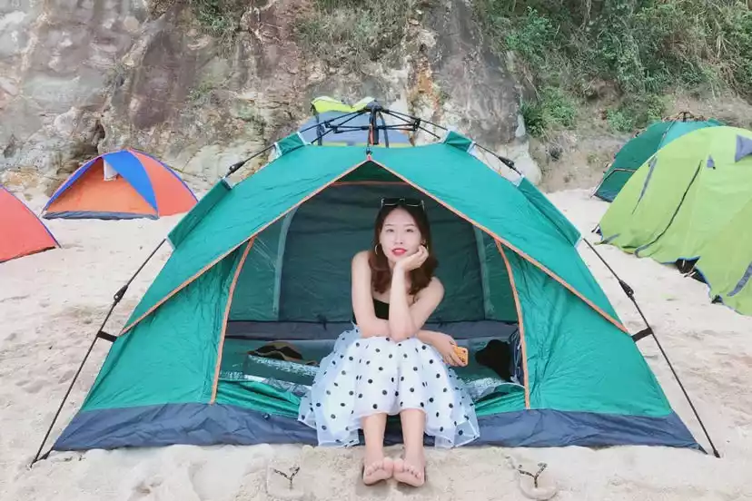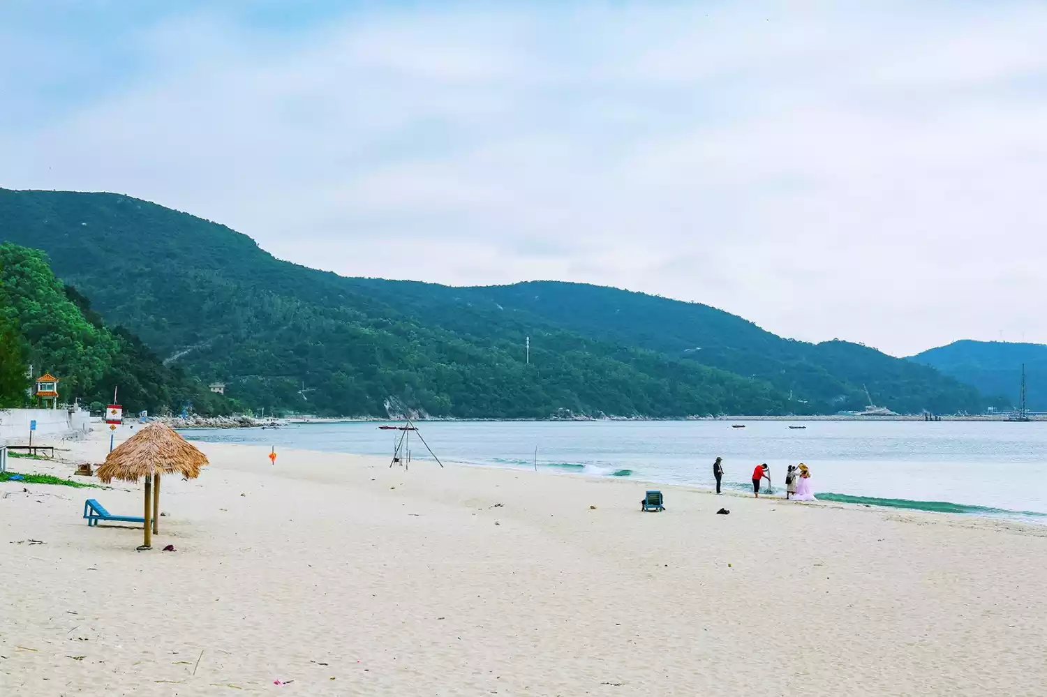 Green mountains on three sides gently embrace the crescent-shaped, 1,000-meter-long beach in the middle. Stepping barefoot on the silver beach, the soft white sand is as smooth as a carpet, and the waves occasionally rush up to kiss your feet, it's a very comfortable feeling.