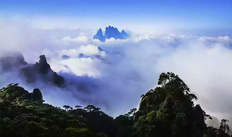 The sea of clouds at Sanqingshan is also a unique sight. Looking out from afar, the beautiful scenery appears and disappears amidst the swirling clouds and mist, creating an ever-changing wonderland, with clouds and mist transforming into a myriad of images.