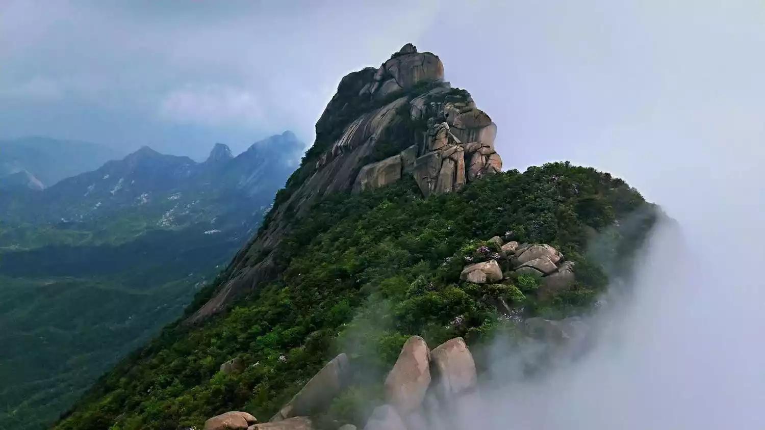 Lingshan, a rare ring of granite peaks, is renowned for its towering peaks. Its 72 peaks, each one strikingly beautiful and graceful, offer a myriad of forms. From afar, Lingshan resembles a reclining beauty; from above, it soars through the sky like an eagle; and from below, it resembles a gigantic dragon, entwined across the northeastern Jiangxi landscape.