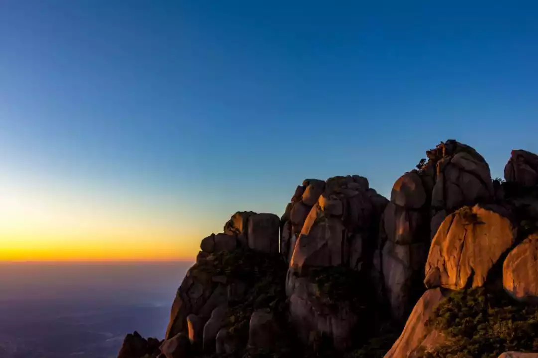 The summit of Dongtai Peak is composed of several massive granite blocks. From the summit, you can overlook other mountains, and in both directions, you'll see a winding, undulating formation of giant rocks stretching into the sky.