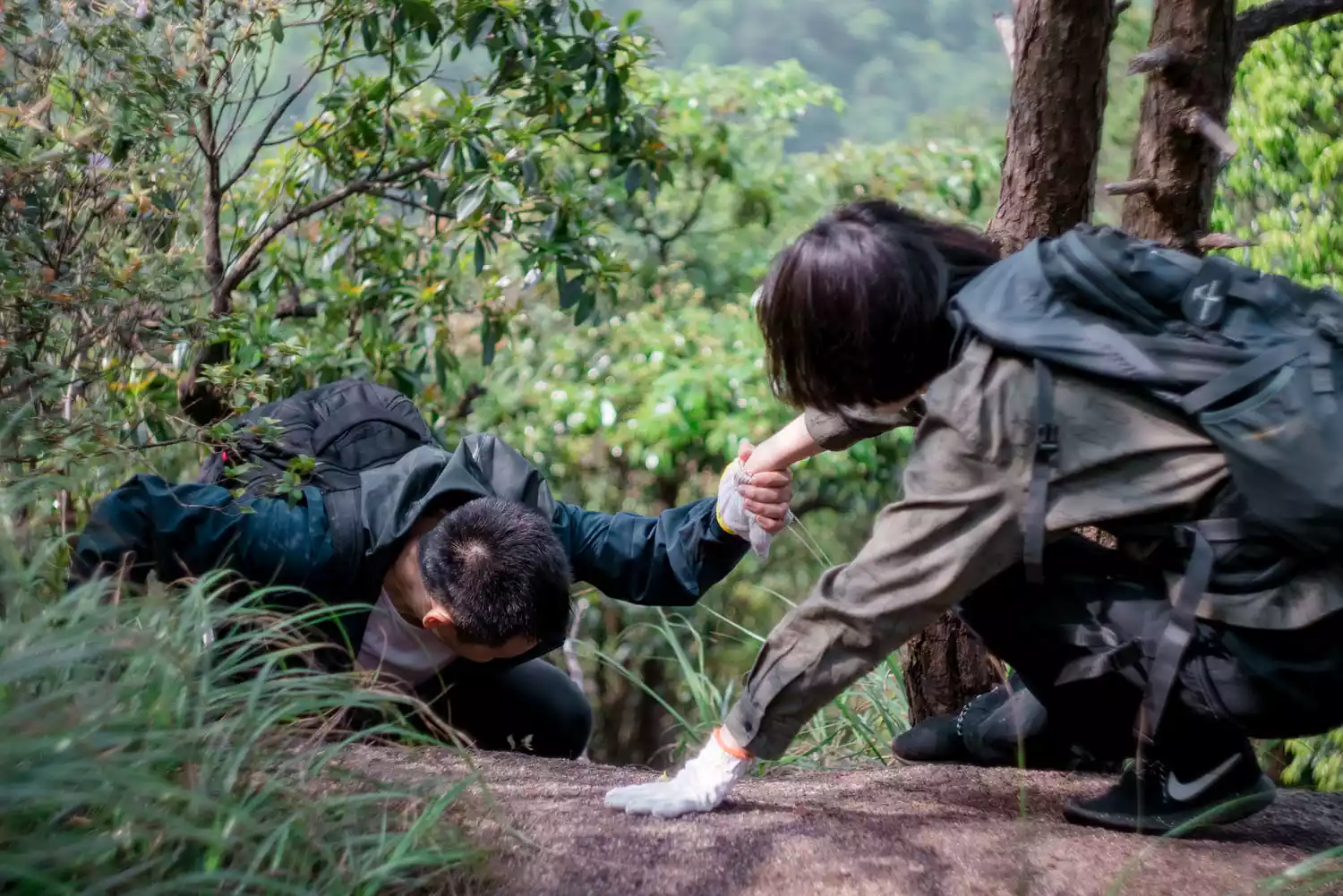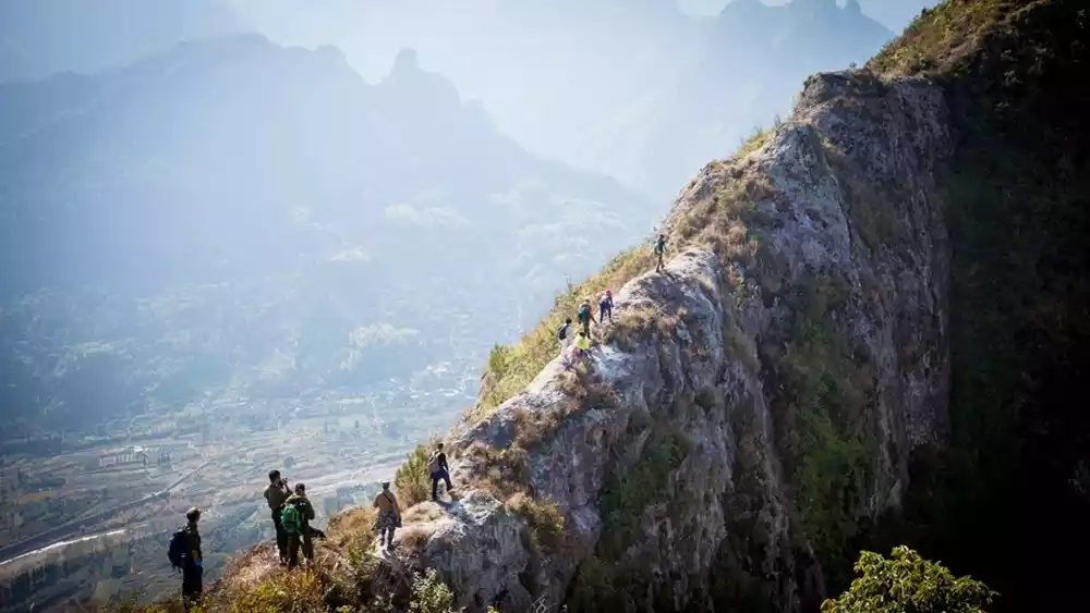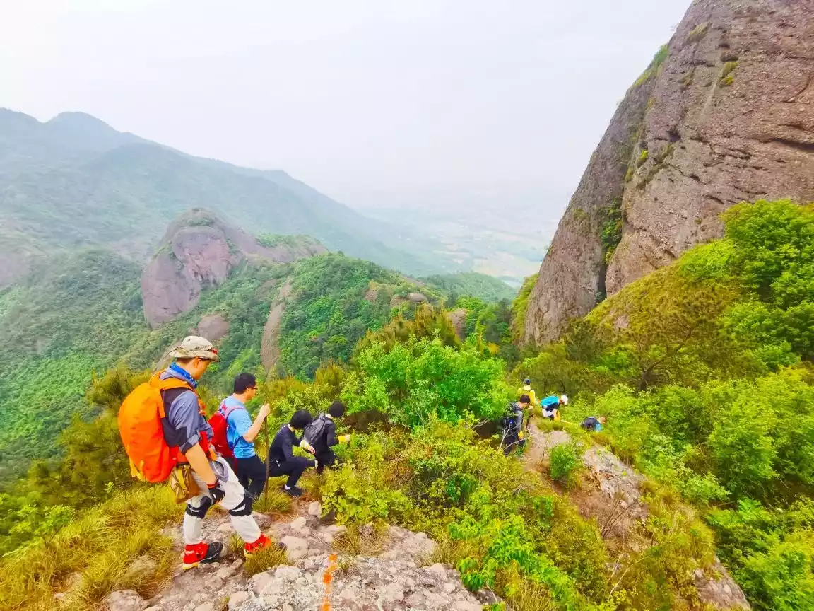 The Lingshan Zhongtai Peak outdoor loop starts from Zuoxi Longjing Village. The whole route is about 6 kilometers, with an altitude difference of more than 1,000 meters. It takes an average person 8-9 hours to climb. There are 5-6 sections that require the use of ropes to climb.