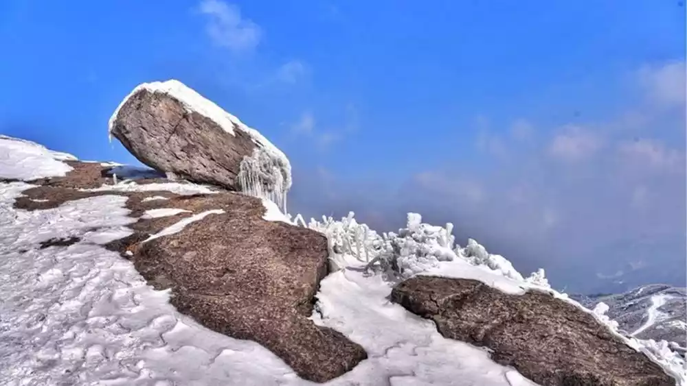 The rare inverted stone landform, Zhongtai Peak and Tianti Peak are different from the green sea of clouds in Wugong Mountain. They are the legend of huge rocks.