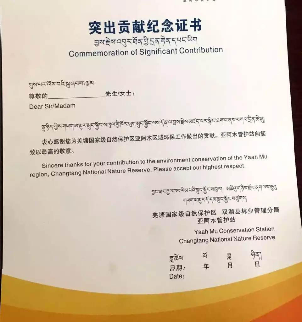 After the event, China-TravelNote will also issue each tourist with an environmental certification certificate from the Yaamu Conservation Station, the core area of the national Qiangtang Nature Reserve.