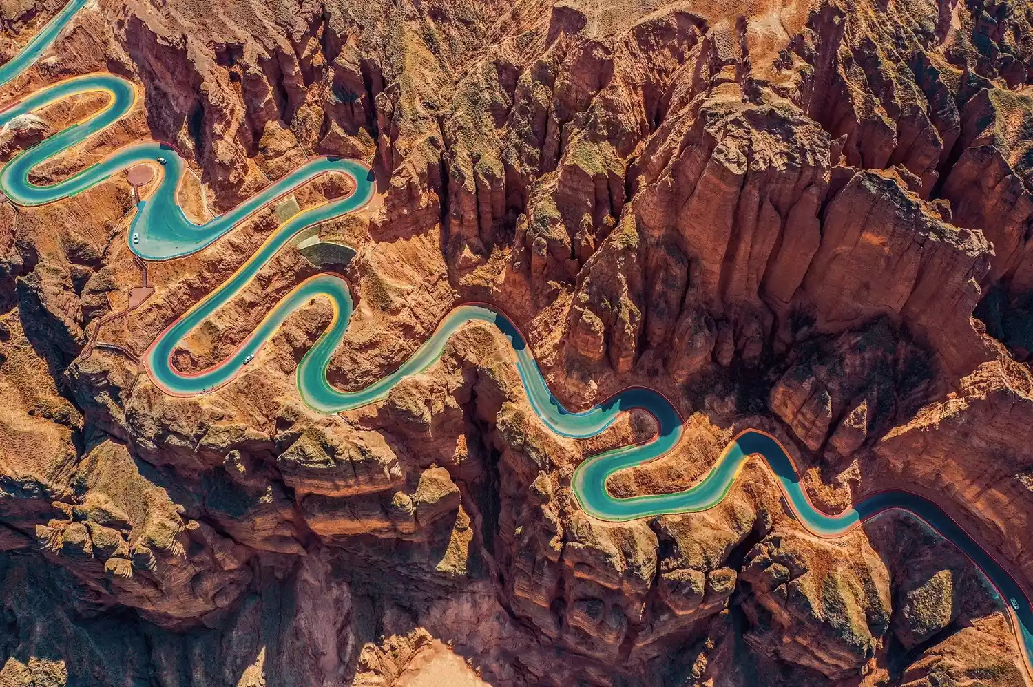 This is the only way to the Yellow River Stone Forest National Geopark. The road is extremely winding. When driving on it, the towering stone forest on the side seems to block out the sky.