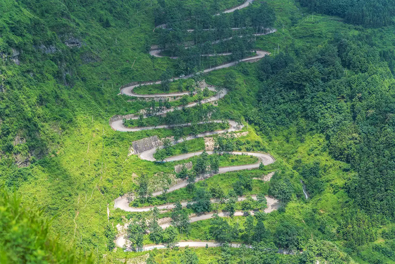 The straight-line distance from the foot of the mountain to the top of the mountain is about 350 meters. The highway is built in an "S" shape on a slope with an inclination of about 60 degrees. The entire length is about 4 kilometers. It is winding and has dense bends. There may be a "U-turn" every less than 100 meters.