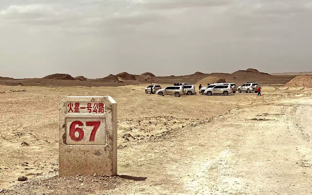It starts between the 953km and 954km signs on G315 National Highway and ends at the ruins of the No. 5 Oil Base in Lenghu. It is 88km long, so it is also called "Mars Highway 88".