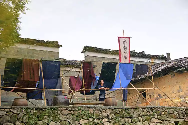 The dyeing workshop by the pond and the bamboo poles used to dry cloth also became our props. Can you see that this photo is actually a reflection in the water? The difference between reality and illusion is very fine, so what you see is not necessarily the truth.