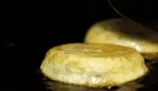 The secret lies in the ratio of egg liquid and chopped green onions. The meat patties are used as the base of the dough, and then a thick layer of chopped green onions is spread on it. After wrapping it into a cake, a small hole is left to pour in the egg liquid.