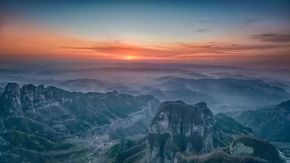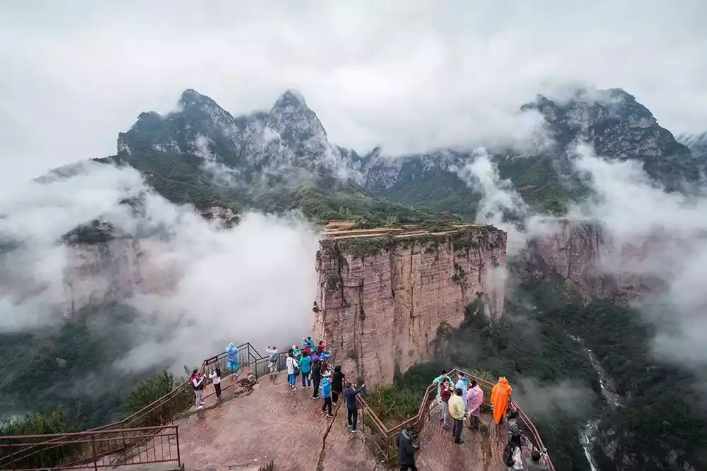 The most beautiful section of Taihang Mountain is the South Taihang, which has a landform with towering cliffs. The cliffs are thousands of feet high and majestic, but it is also rich in vegetation, with brocade and ravines everywhere.