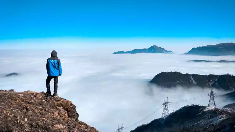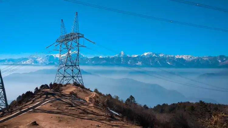 When you reach the foot of the high-voltage power tower, you are almost halfway there. If the weather is good, you can already see the Gongga Snow Mountain.