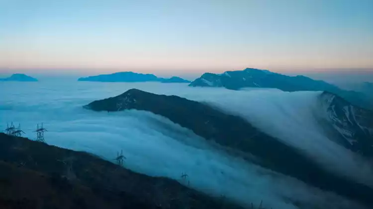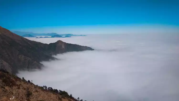 Erlang Mountain lies at the junction of the Sichuan Basin and the Qinghai-Tibet Plateau. Its towering massif blocks moisture from the eastern plains, creating a breathtaking sea of clouds. Strolling among the clouds, one wonders whether this is a fairyland or the human world.