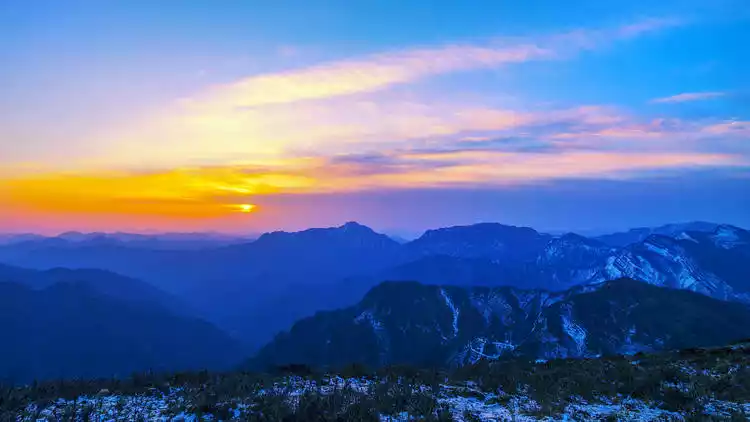 The 360° panoramic viewing platform at the top of Hongyan Peak offers views of the sea of clouds, cloud waterfalls, starry sky, and sunrise in the east, the Gongga Snow Mountain in the west, and the Niubei Mountain and other peaks in the south. In the north, you can also see a row of seasonal snow-capped mountains about 5,000 meters high. The platform has a wide field of view and rich scenery, and is worthy of its reputation as a panoramic viewing platform.