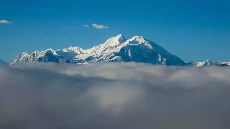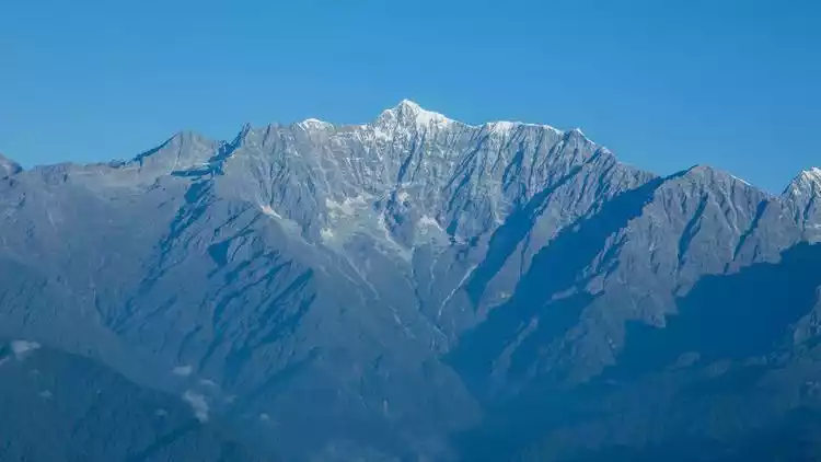 When the sun just rises from the east, the light is still relatively soft. The sunlight shines on the Gongga Snow Mountain in the west. The snow on the snow mountain shines golden under the sunlight, forming the magical Golden Mountain in the Sunlight.