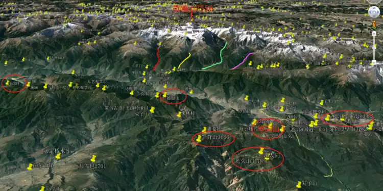 The snow-capped mountains such as Muya Gongga at 7556 meters, Zhongshan Peak at 6886 meters, Edgar Peak at 6618 meters, Langgemanyin at 6294 meters, Daduomanyin at 6380 meters, and Tianhaizi Mountain at 6070 meters are all in sight.