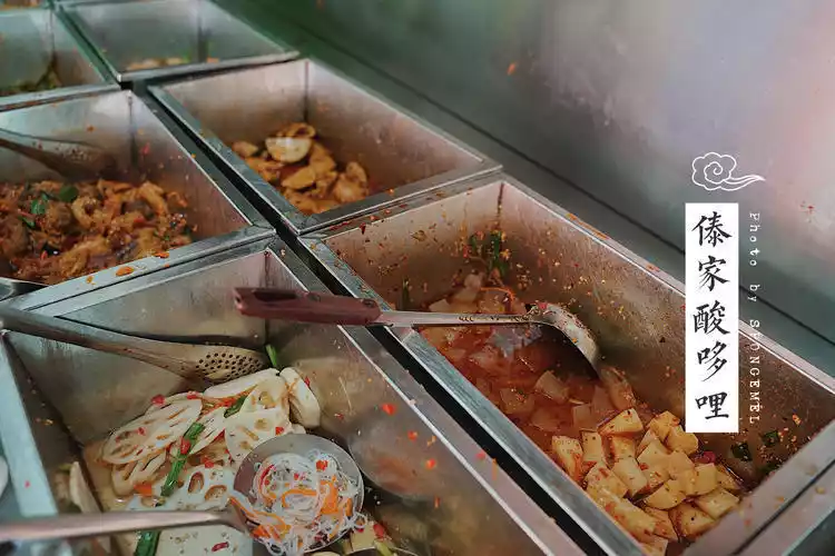 At the other exit of Xiaomiao Street, the yellow-green sign for Daijia Suanduoli stands out prominently. By evening, many of the dishes are sold out, demonstrating just how popular this spicy and sour snack is among the locals.