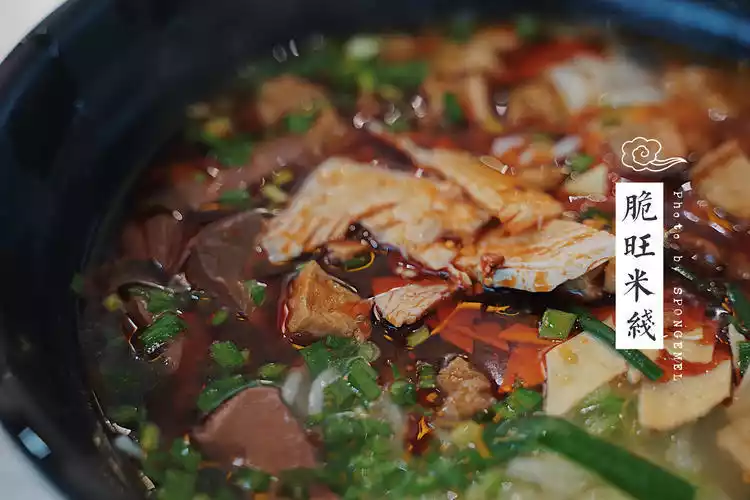 With over a century of history, Jianxinyuan is one of Kunming's few "time-honored Chinese brands." Its origins date back to the late Qing Dynasty, when the Qing government abolished the 1,300-year-old imperial examination system. Scholars, once known for their academic excellence, were forced to find alternatives. Among them, three Kunming students, inspired by the Guizhou Changwang noodles recipe, launched Kunming's first Changwang rice noodles, which quickly became a huge hit. Later, adapting to local dietary habits, Jianxinyuan eliminated the "fat intestine cap" and replaced it with a "Cuiwang rice noodles" dish featuring crispy scallions, Yunnan-style cold white pork slices, and five-spice tofu, topped with blood curd. This has since become the signature dish of this century-old restaurant.
