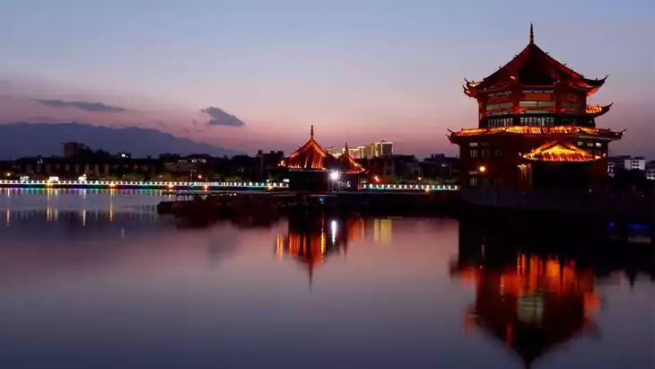 Mengzi isn't a large city, but it's clean and tidy. Its streets appear spacious compared to its size, lending it a sense of grandeur. Nestled in a corner of the city lies the picturesque South Lake, where pavilions and towers retain their original appearance. The stone arch bridge, the inspiration for the legendary "Cross-Bridge Rice Noodles," still stands above the lake.