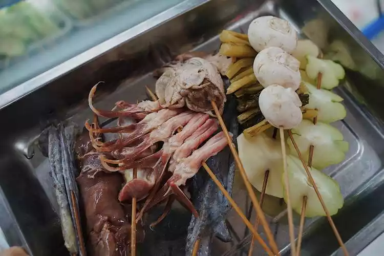 Barbeque restaurants here almost never have menus. All ingredients are skewered and placed in the refrigerator, and diners can choose their own.
