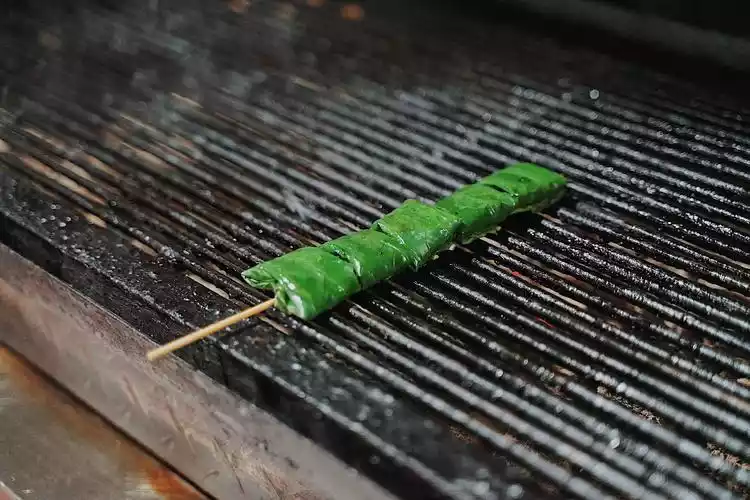 While waiting for the boss to be busy, I popped in next door. The two restaurants have a close relationship, allowing customers to order from one and have it delivered to the other. The neighboring restaurant, Jinping Mengla BBQ Restaurant, specializes in Mengla Dai-style fare. Walking in, I saw the owner wrapping minced meat in a green leaf like origami, stringing them together one by one and grilling them over a fire until the leaf wilts. This is actually a Dai specialty—meat wrapped in fragrant leaves. These leaves, called haoyaolao in Dai, come from the Piperaceae family and have a naturally fragrant aroma. They're usually wrapped in leaves, then fried or grilled, and served with the leaves, creating an indescribably delicious and fragrant dish.
