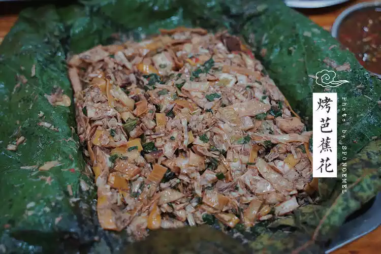 The Dai, Hani, and other ethnic groups enjoy using banana flowers in their cooking. Wash and chop the yellow, tubular flowers, marinate with seasonings, and then place them in banana leaves and heat thoroughly over a fire. The banana flowers have a soft, glutinous texture, resembling the appearance and texture of perfectly cooked chopped green onions. However, chewing them carefully reveals a subtle banana aroma and a slightly sweet aftertaste.