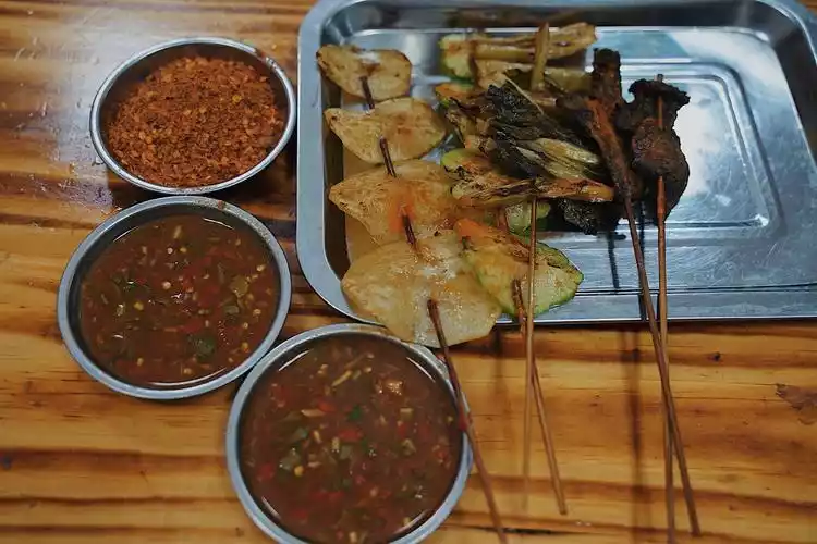 Perhaps due to the black-bone chicken's skin color, the skewers looked unremarkable, even a bit burnt. However, they were crispy and fragrant, and the chicken meat was chewy. The skin, in particular, was grilled like a thin sheet of paper, with no hint of fat. The accompanying chili sauce was incredibly fiery, and when it came to spicy food, the southwestern provinces were unmatched.