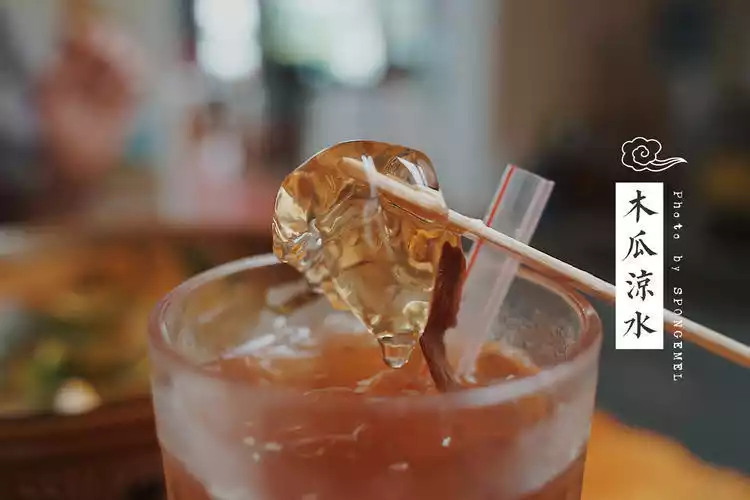 Wrap papaya seeds in gauze and rub them in water until a sticky liquid forms. After letting it sit, it forms a solid, jelly-like substance. The crystal-like jelly, lifted with a trembling wooden stick, trembles and reflects the summer sunlight. Add brown sugar water and ice, and it brings a refreshing sweetness to those who have already had enough wine and food in the scorching summer heat of the plateau.