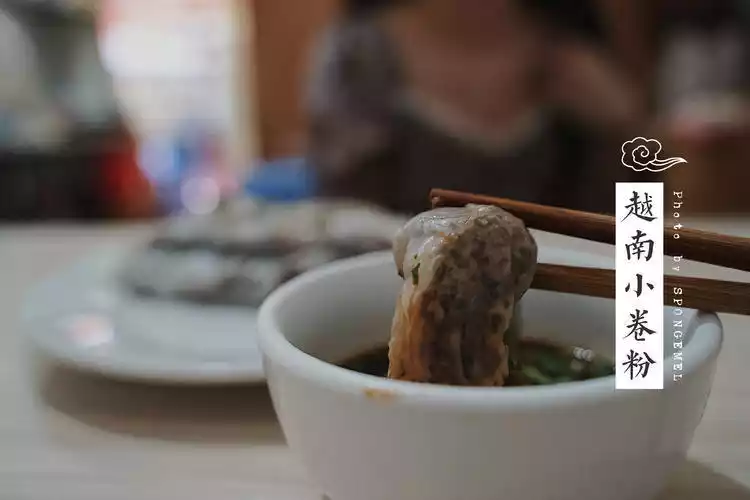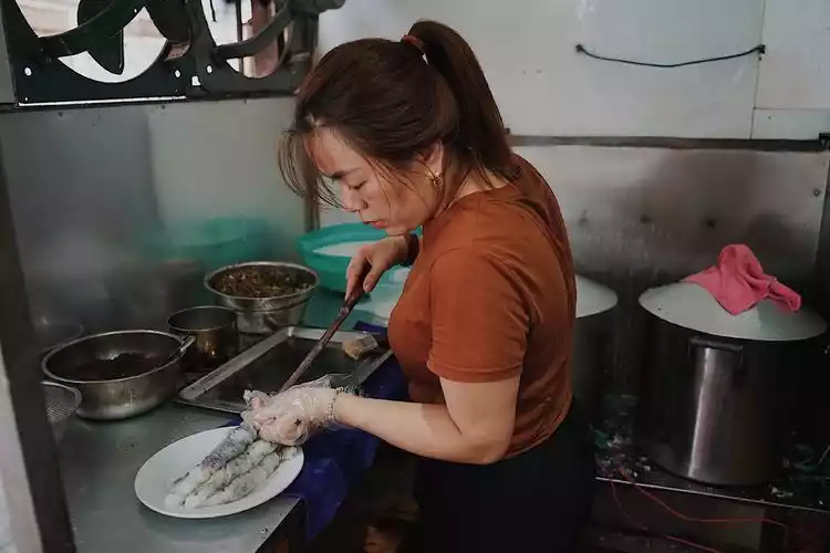 You need to prepare the dipping sauce yourself: the owner of the store has already prepared the sauce with fish sauce, soy sauce, etc., and you can add coriander, chili peppers, and lemon juice according to your taste. This bowl of dipping sauce is the finishing touch of a seemingly ordinary piece of rice noodle rolls.