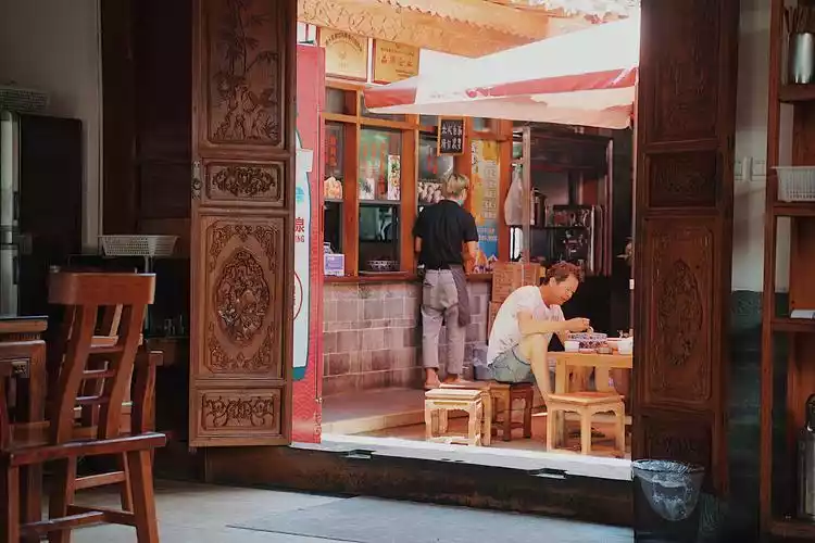 Baoxinglou, a time-honored brand in Jianshui, is located in a beautiful old house with a patio. Walking out of the back door, you will see a very romantic street.