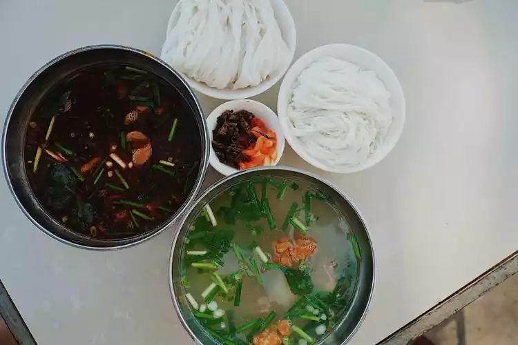 Tucked away in a small alleyway in the heart of the city, this Vietnamese rice noodle shop is a veritable internet sensation in Hekou. Most people who've been to Hekou have heard of it. Its lack of a sign and nondescript location are both mysterious enough to draw visitors in.