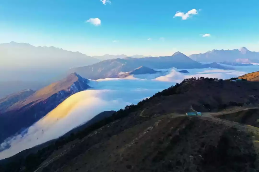 Besides viewing snow-capped mountains, the sun shining on the golden mountain, cloud waterfalls, rosy clouds, starry skies, and the Milky Way... these stunning natural scenery can all be seen here. Huajian Mountain is also known as the "Little Niubei Mountain" for another reason: the cloud waterfalls here are so stunning that they rival those of Niubei Mountain.