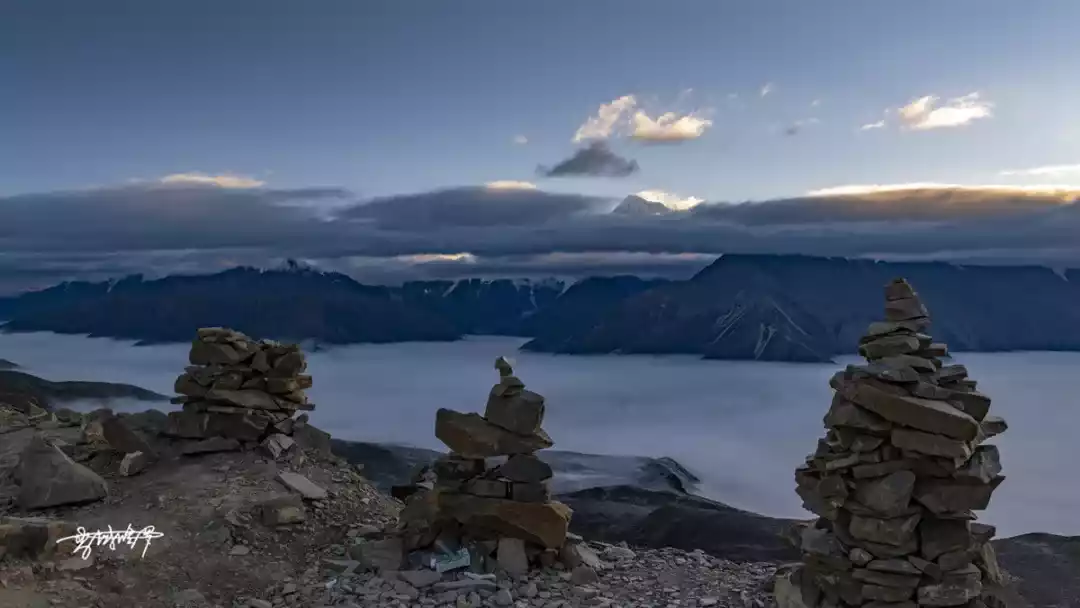 Black Stone City, located on Gaolusi Mountain, is said to be a mysterious religious site, home to dozens of mani piles over a meter tall. Others claim it's the remains of an ancient battlefield dating back centuries, imbued with a vast and mysterious cultural atmosphere. While the distance to Gongga Peak is over 60 kilometers, the views are incredibly expansive, making it one of the best viewing platforms for photographing the sunset over Gongga, with views of Tianhaizi Mountain and the sacred Yala Mountain in the distance.