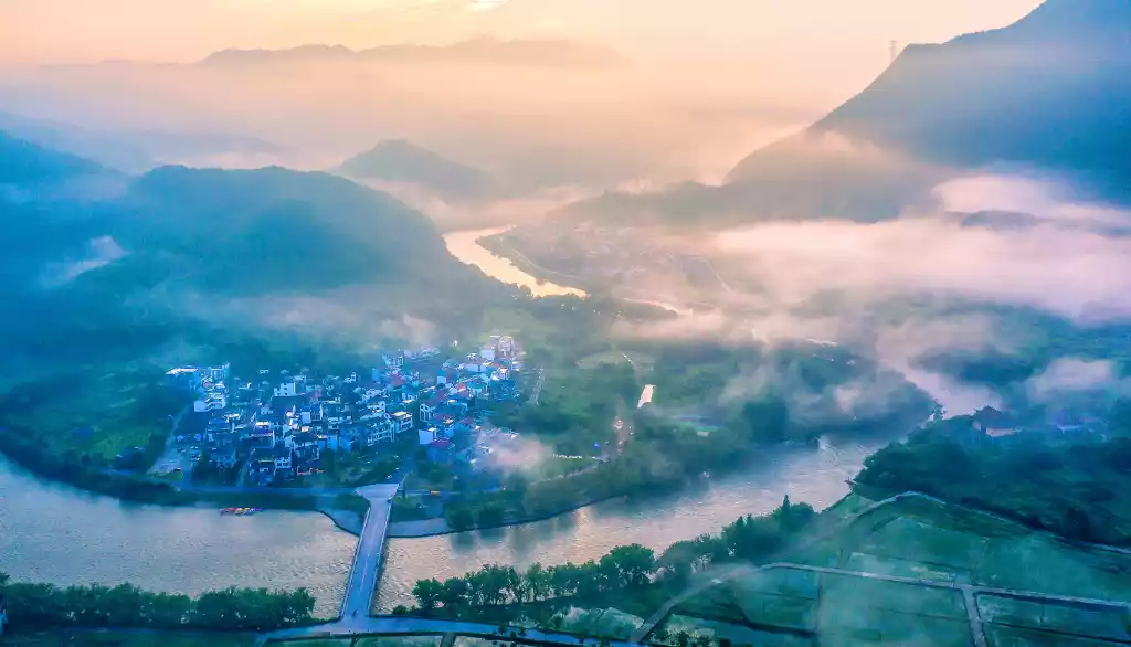 Nature uses water as its brush, painting the landscapes of the ancient Meilin Ferry, the lush wetlands, and the graceful paths of the Jiangnan region. 1,500 years ago, the renowned geographer Li Daoyuan was captivated by the beauty of the Nanjiang River. The road was sparsely populated, with a vibrant array of flowers blooming on both sides, creating a romantic countryside scene where mountains, water, and countryside blend together.