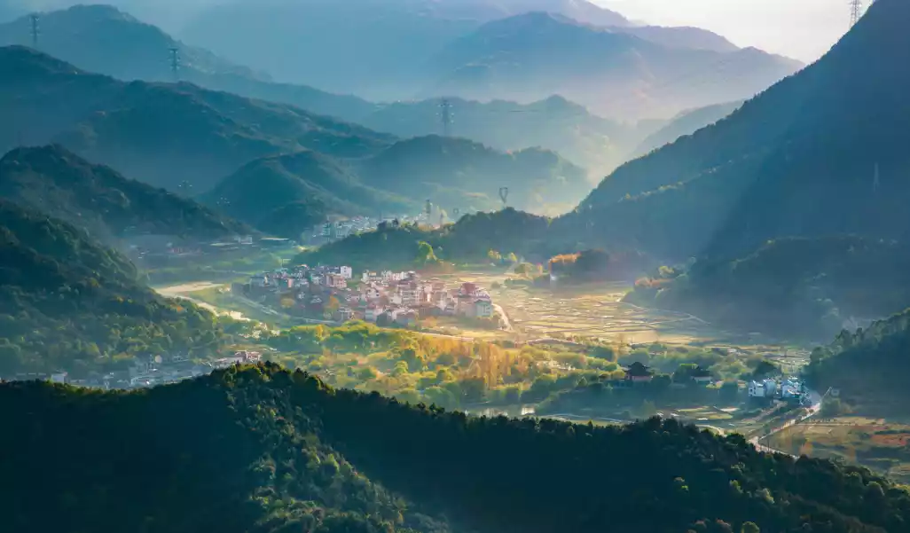 The Ten-Li Nanjiang River, flowing gently from Yangcaojian on Shuangfeng Mountain in Pan'an, winds its way through the Wushang plain for ten miles before merging majestically into the Yiwu River. Amidst the intertwining mountains and picturesque vegetation, a 13-kilometer-long scenic route resembles something out of the painting "Dwelling in the Fuchun Mountains," connecting the stunning villages of Huawukeng, Balingkeng, Shibi Village, Zhong Village, and Nanwangdian from west to east.