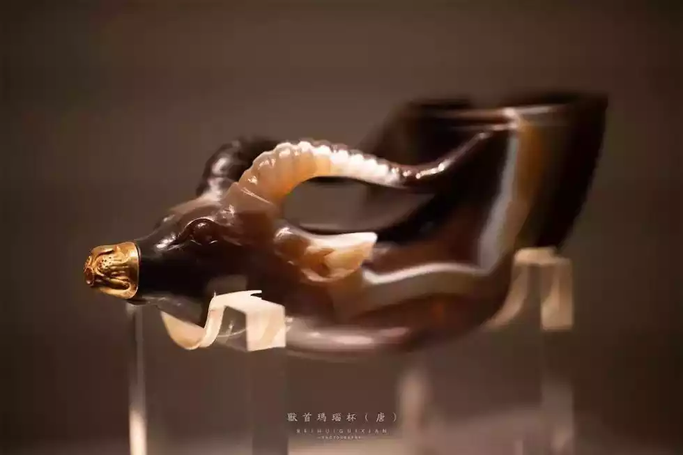 Here we have an animal-head agate cup from the Tang Dynasty, which is the treasure of our museum and the only colorful jade carving from the Tang Dynasty seen so far.