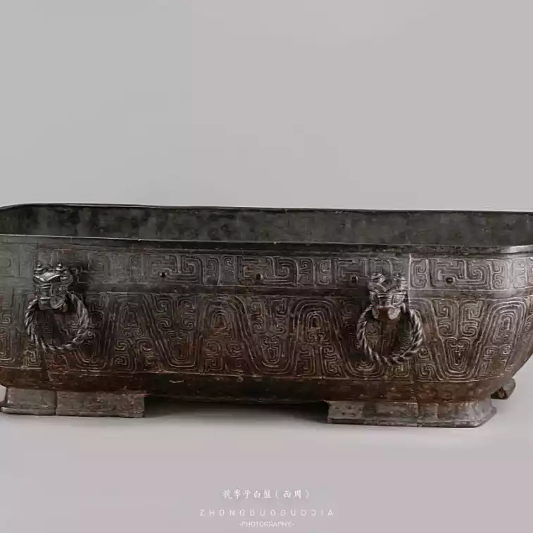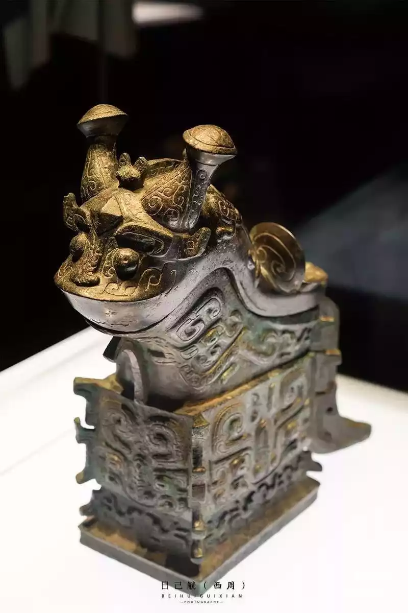 Here is a Western Zhou Dynasty bronze ware called Riji Gong, which has relief carvings of animal faces, Kuilong, birds, and tiger patterns on the same vessel, making it a classic Western Zhou bronze ware.