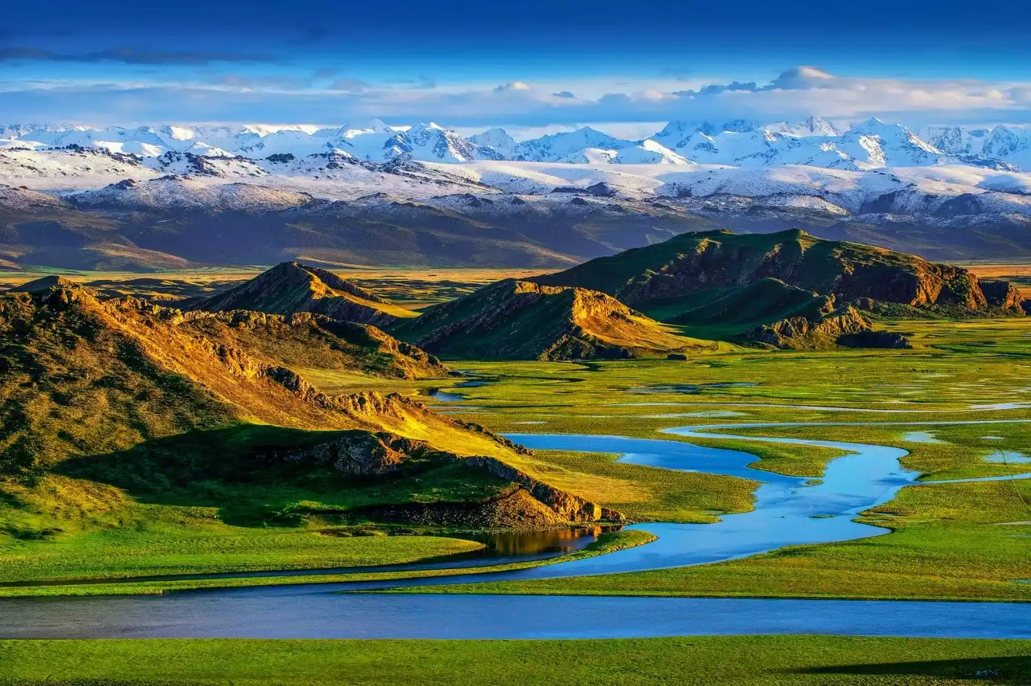 The Kaidu River (also known as the Nine Bends and Eighteen Turns) winds through the grassland, adding a flowing gentleness to the grassland. Be sure to wait for a sunset in Bayinbuluke. As the setting sun gradually disappears into the horizon, the Nine Bends and Eighteen Turns on the ground will slowly show nine sunsets.