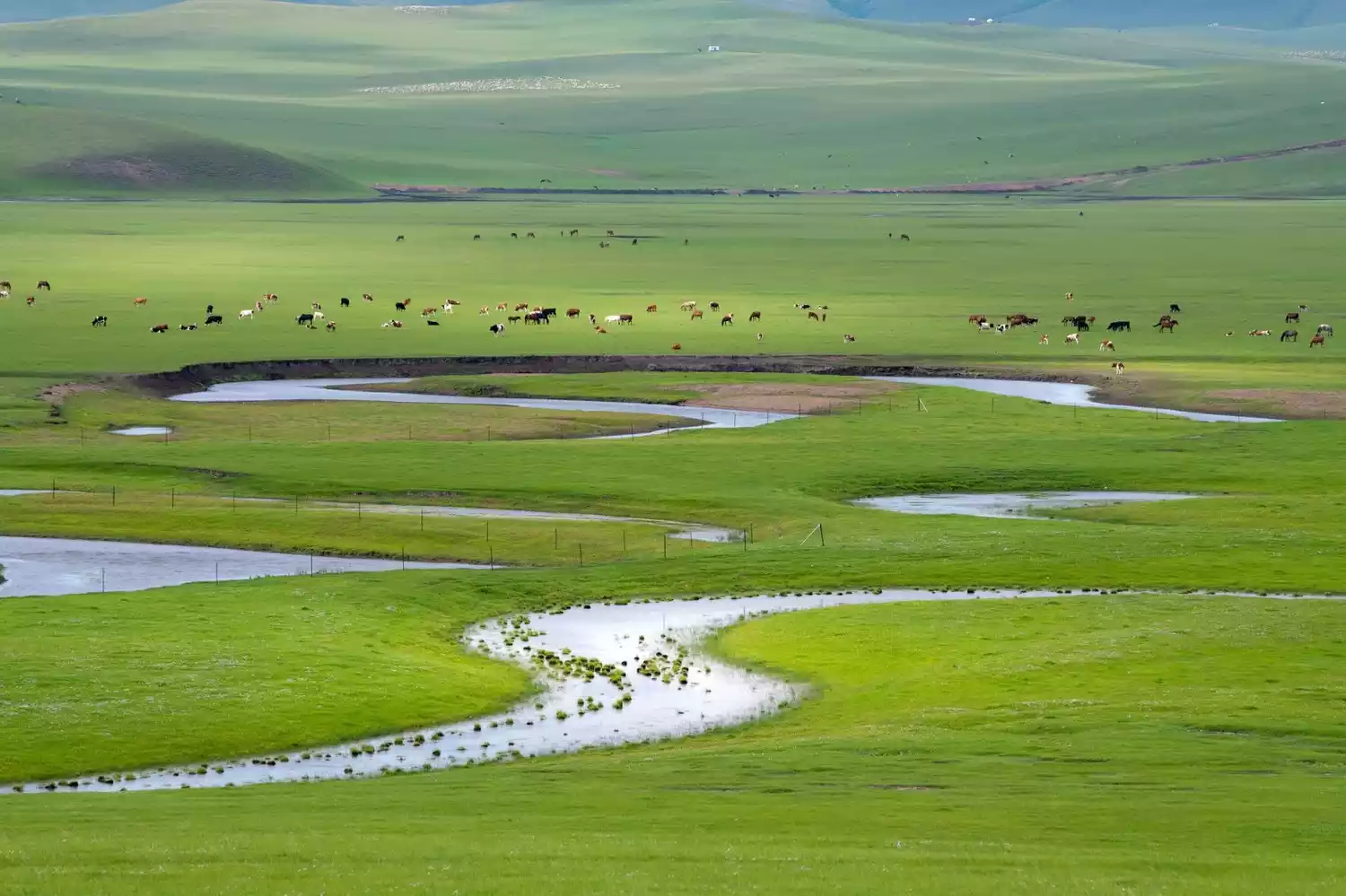 The vast grassland stretches as far as the eye can see, with low white clouds in the sky and boundless fields. The wind blows through the grass and you can see cattle and sheep. Taking a deep breath of air brings you the long-lost freedom and comfort.