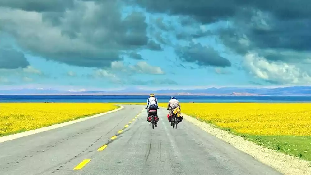The azure sky, white clouds, rolling snow-capped mountains, the blue lake, the golden sea of rapeseed flowers, the fluttering Tibetan prayer flags, the road stretching to the horizon... Qinghai Lake in summer is a stunning painting that makes everyone who arrives here unforgettable.