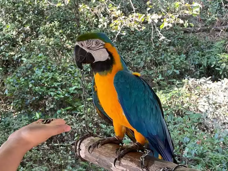 This place is truly a bird paradise. I was particularly impressed by this white parrot, scientifically known as the Sulphur-crested Cockatoo. It has a terrible temper. If you feed it or tease it, it will spread its crest and flutter its wings, giving off a "keep out" expression. But despite its temper, it's actually quite adorable.