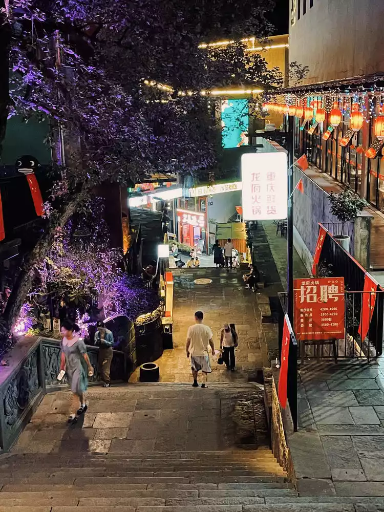 After watching the sunset from the Tianyu Mountain Observation Deck, you can go to the fish market for dinner (we didn't go), then head directly to Qilong Alley to browse the night market. These attractions are all located nearby. Qilong Alley feels a bit like a miniature Chongqing. Because it's a staircase that leads all the way to the mountain city, it feels like you're on the way to the city.